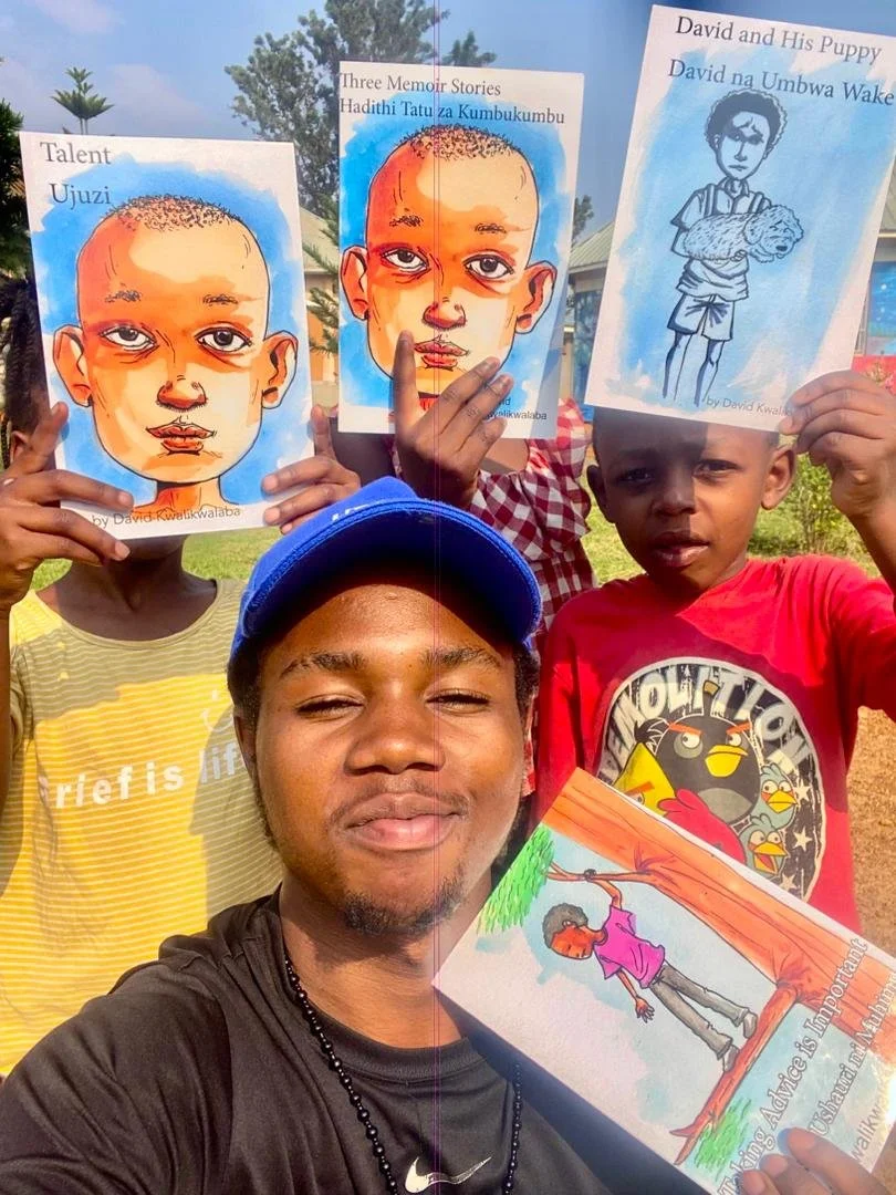 David is a naturally gifted artist and illustrator. He has finished secondary school and now taken it upon himself to teach young children in the settlement how to draw and paint. He was delighted to be able to share his books that he created with some of his students. In the coming years David will be leading illustrated memoir projects in Nakivale himself.